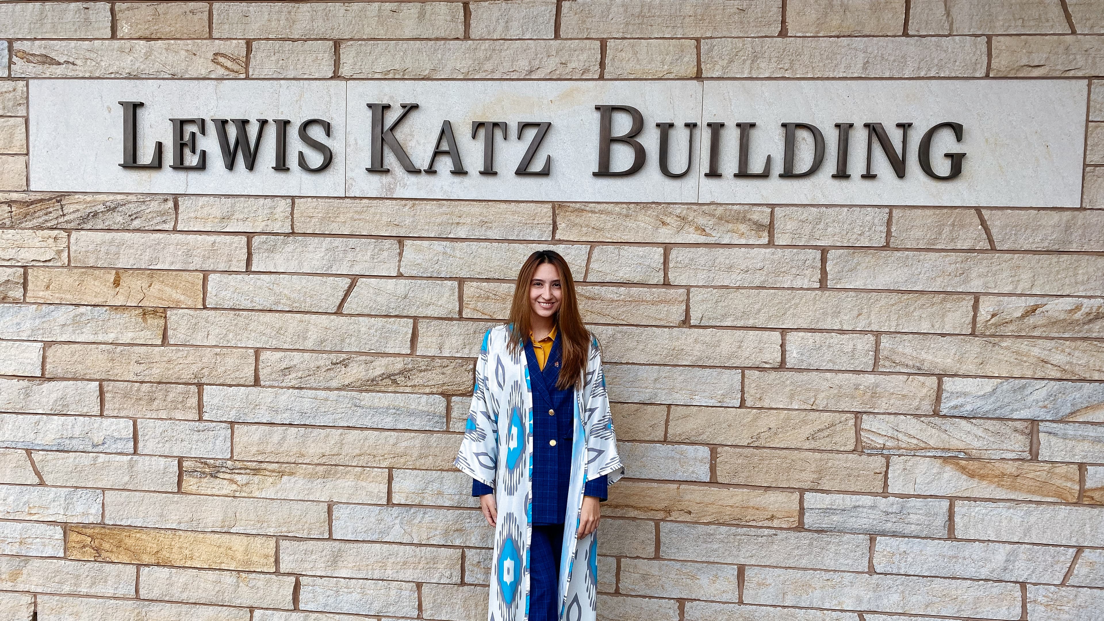 Posing in front the Lewis Katz Building, home to Penn State Law School and the School of International Affairs, Tuychieva says that with law, “you need to listen … and analyze what you can help with, what you can do [to help others], what you can do for them, how you can solve their problems.”