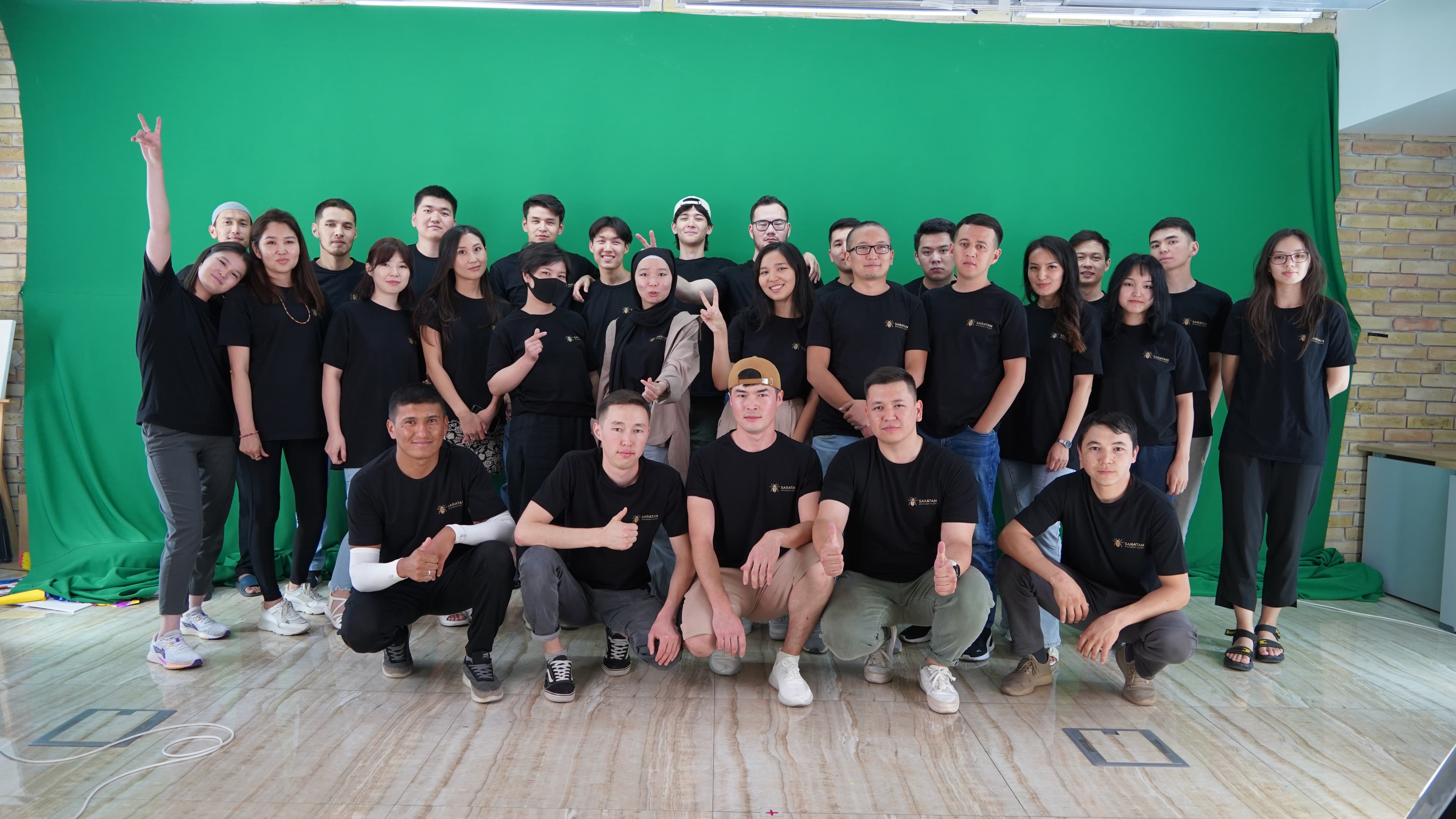 Abai Zhalilov, project manager for Saratan Animation Studio, back row, third from left, poses with his team of animators and designers. Together they produce Saratan’s most-successful project on YouTube, Lalafun. Photo courtesy of Saratan Animation Studio