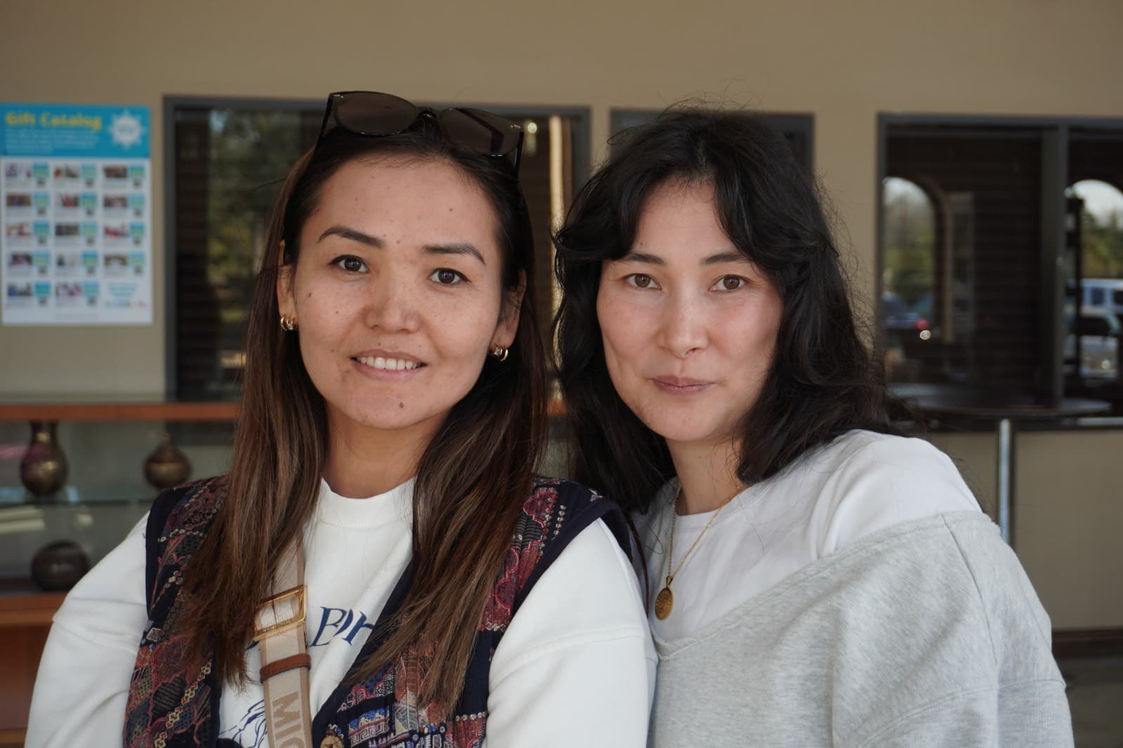 Dallas-area friends Maral Murzakmoatova, left, and Nurzhan Raimzhan, right, at the Friendship and Sports Tournament. Maral competed in chess and table tennis, and although she didn’t place, she sees value in what the sports event has done. “The first thing is coming together,” she said. The goal is for the community to grow, especially for children and their future.”