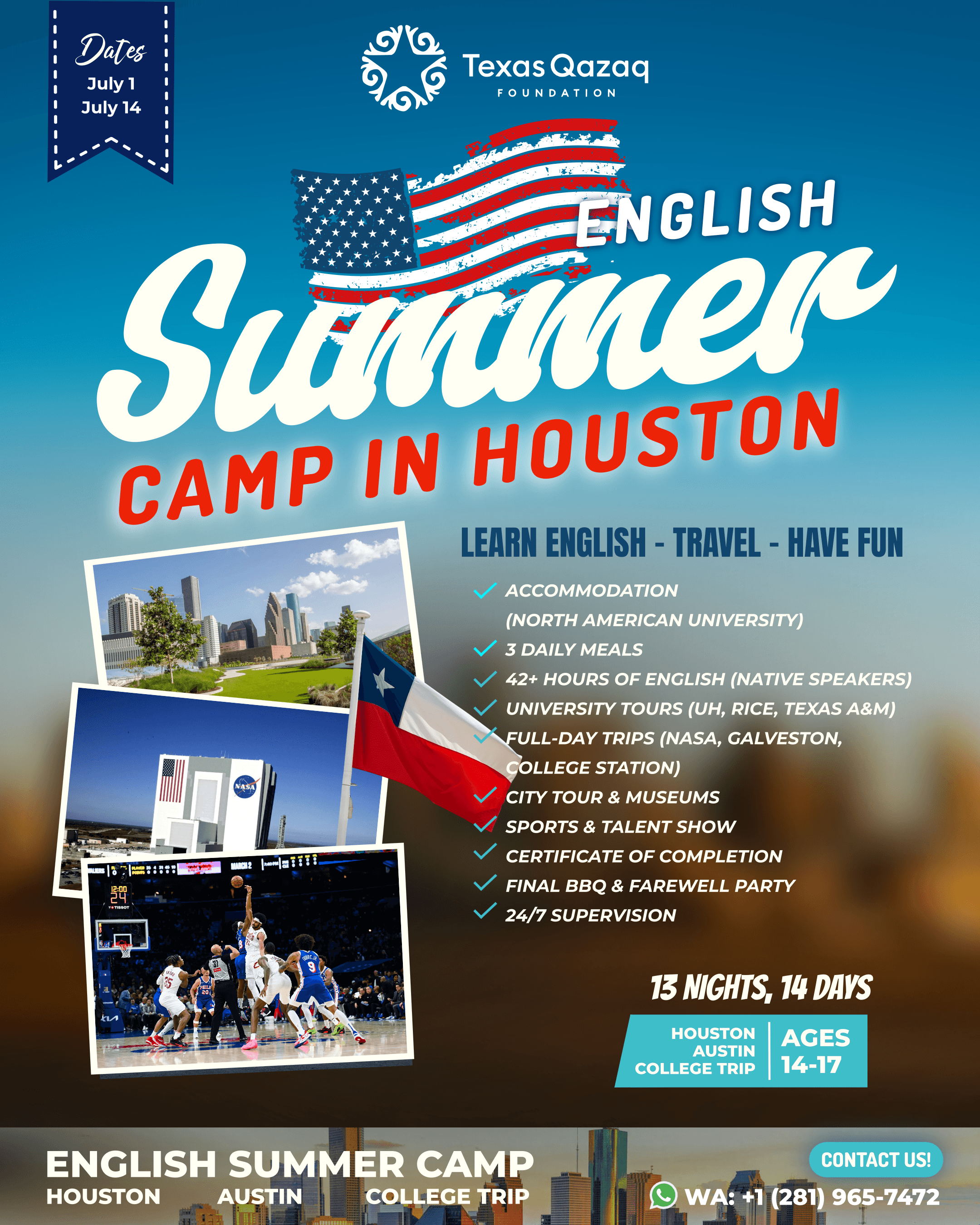 English Immersion Summer Camp in Houston for International Teens Organized by Texas Qazaq Foundation